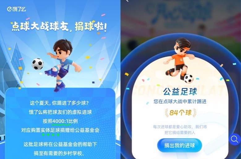 餓了么上線公益足球捐贈(zèng):讓數(shù)千萬個(gè)游戲進(jìn)球變身實(shí)物足球捐給需要的人