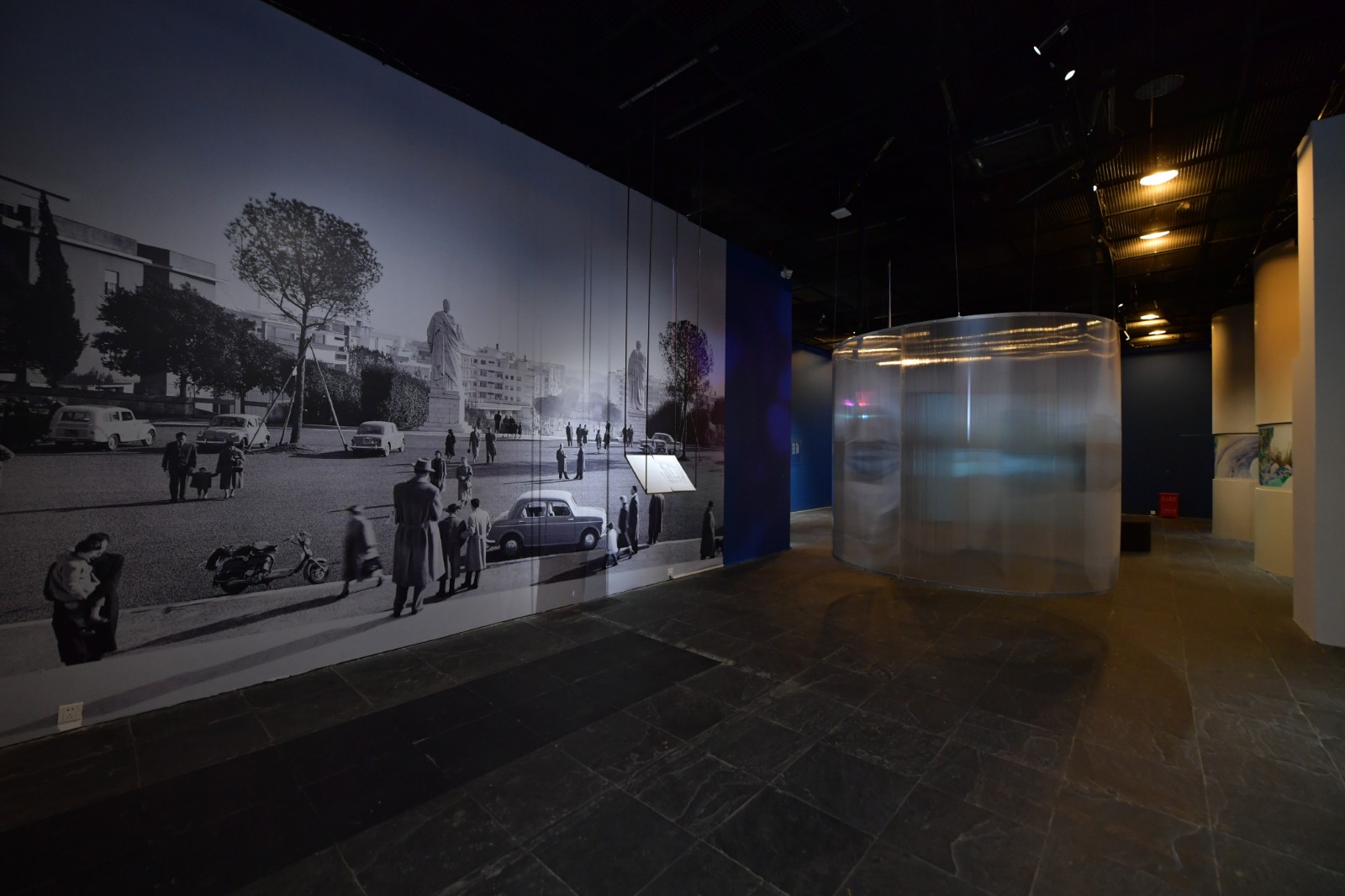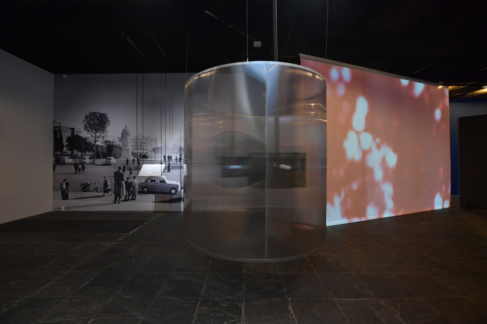 臺階的最上方引導(dǎo)著觀眾走向迷宮的“出口”——那是一個陽臺,它被認為跨越了私人領(lǐng)域和公共領(lǐng)域之間的那條不甚明晰的界限。人們在登上陽臺的那一瞬間,目之所及的是胡偉呈現(xiàn)的“廣場”。在《為公共口口(邂逅),提案》中,胡偉對自己家鄉(xiāng)的廣場進行了調(diào)研,廣場中心紀念碑雕塑的拆除背后是對一段宏觀歷史的回顧,展柜中陳列的文獻材料,3D打印復(fù)原的紀念碑與噴泉,都以一種最傳統(tǒng)的方式印證著這段歷史的發(fā)生與存在。而在面向陽臺的視頻圖像語境中,胡偉通過鏡頭的聚焦切換與角度變化,在宏觀的歷史背景外,其似乎在試圖提煉除一種模糊的普遍性,其適用于廣泛的公共空間與集體記憶,卻與人們的個體記憶都有不謀而合之處,但又難以捕捉,“沒有面目,也無人認領(lǐng)”。