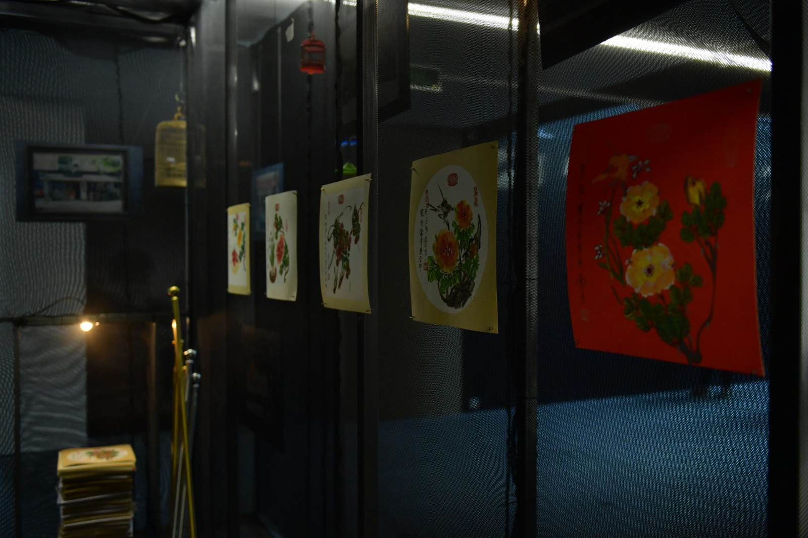 有趣的是,在陳淑瑜與未建筑設(shè)計研究所共同設(shè)計的“迷宮”裝置中,陳淑瑜以策展的方式又介入了耶丁的這段創(chuàng)作經(jīng)歷中。進入暗室中的迷宮,觀眾沿著旋轉(zhuǎn)的樓梯向上前行,一路遇到的老照片,帶有時代氣息的畫作,被置于凹陷空間深處的視頻,以及需要置身于“洞穴”中去傾聽的獨白,都昭示著一種極強的私密性,在不見光亮的迷宮中,人們在狹窄而形態(tài)怪誕的通道中甚至無法錯開身來,被迫與他人“分享”私密。