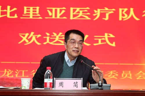 周簡書記代表國家衛(wèi)生健康委,以“再武裝、再出發(fā)、再戰(zhàn)斗”為題,從思想準(zhǔn)備、組織準(zhǔn)備、技術(shù)準(zhǔn)備、物資準(zhǔn)備等四個方面向醫(yī)療隊(duì)寄語。他指出,中國對外衛(wèi)生援助淵遠(yuǎn)流長,在半個多世紀(jì)的時(shí)間里,黑龍江省共派出1030人次醫(yī)務(wù)工作者參與了援外醫(yī)療工作,積極踐行國際人道主義精神,勇于克服種種困難,砥礪前行,為受援國留下了“帶不走的醫(yī)療隊(duì)”。醫(yī)療隊(duì)促進(jìn)了當(dāng)?shù)蒯t(yī)療衛(wèi)生事業(yè)的發(fā)展,有力地支持了我國的外交工作,為推進(jìn)人類和平與發(fā)展的崇高事業(yè)做出了貢獻(xiàn)。當(dāng)前,面對全球肆虐的新冠肺炎疫情,中非合作抗疫刻不容緩,醫(yī)療隊(duì)員面臨的任務(wù)更艱巨,但是使命光榮。