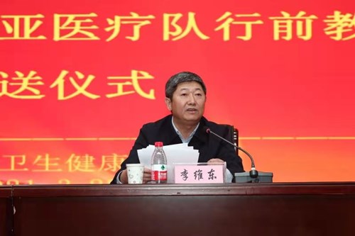 黑龍江省衛(wèi)生健康委黨組成員、副主任李維東作動員講話并為醫(yī)療隊(duì)授旗。他要求全體隊(duì)員深入貫徹新時(shí)代黨的建設(shè)總體工作要求,把“不忘初心、牢記使命”作為持續(xù)加強(qiáng)黨的建設(shè)的永恒課題和黨員干部的終身課題。務(wù)必高度重視疫情防控,做到人物并防、多病同防,疫情防控必須慎終如始,要傳遞好中國抗疫經(jīng)驗(yàn),落實(shí)好對口醫(yī)院合作機(jī)制,推進(jìn)援助項(xiàng)目創(chuàng)新。并以身邊的抗疫英雄為榜樣,秉承援外醫(yī)療優(yōu)良傳統(tǒng)、弘揚(yáng)偉大抗疫精神。