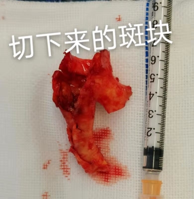 考慮到張大爺既往有腦梗死病史和糖尿病病史,入院后,孫國(guó)章副主任團(tuán)隊(duì)為張大爺進(jìn)行了術(shù)前精準(zhǔn)評(píng)估,完善頭部核磁共振、全腦血管造影檢查,并控制好血壓、血糖等各項(xiàng)指標(biāo)。隨后,孫國(guó)章副主任在顯微鏡下精準(zhǔn)為張大爺實(shí)施了頸動(dòng)脈內(nèi)膜剝脫術(shù),切除了長(zhǎng)度約4cm動(dòng)脈粥樣硬化斑塊。據(jù)了解,由于是在頸動(dòng)脈上做手術(shù),對(duì)手術(shù)技術(shù)及條件要求非常高,孫國(guó)章副主任在術(shù)中克服種種困難,才最終憑借豐富的臨床經(jīng)驗(yàn)成功完成此次手術(shù)。