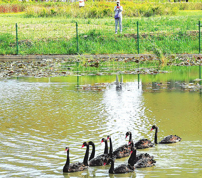 據(jù)大慶市城投公司蘭德湖公園管理處主任孟維凱介紹,這是大慶首次引進(jìn)黑天鵝,一共有10只,都是澳大利亞品種,5月25日傍晚剛放養(yǎng)到湖里。下一步,蘭德湖公園將陸續(xù)建設(shè)供天鵝棲息的小屋,并投入觀光游艇、腳踏船、觀光車、游樂(lè)設(shè)施等,為市民打造新的旅游打卡地。