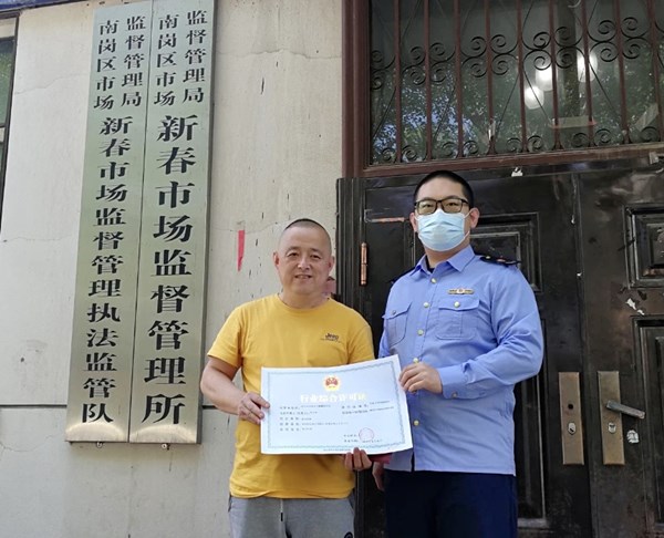 龍頭新聞?dòng)崳?span style="font-family: 宋體, SimSun; text-align: justify; text-indent: 32px;">朱大治 記者劉莉)“真是方便!”6月8日,哈爾濱市南崗區(qū)麒麟蛋糕房經(jīng)營者從哈市南崗區(qū)市場監(jiān)管局新春市場監(jiān)管所拿到《行業(yè)綜合許可證》后由衷感嘆道。這是哈爾濱推進(jìn)“一業(yè)一證”改革以來發(fā)出的首張《行業(yè)綜合許可證》。