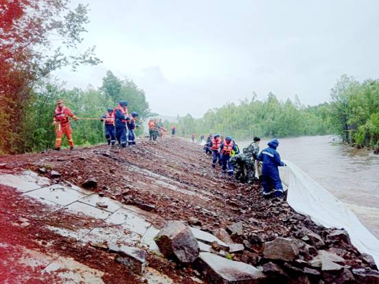 截至目前,呼中區(qū)局共計投入?yún)⑴c搶險救援2000余人次,調(diào)用飛機2架次,共調(diào)集鉤機、裝載機、翻斗車等大型機械車輛60臺,投入編織袋10000條、土石料3000立方米、砂石料4000立方米、照明設(shè)備20臺、發(fā)電機25臺、投入鐵線200捆,編制鐵絲籠1000平方米,搶險7處,轉(zhuǎn)移受災(zāi)群眾12戶19人。