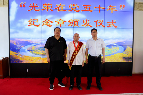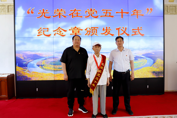 林業(yè)局黨委書記胡守慶,林業(yè)局黨委副書記、局長韓鳳泉為老黨員頒發(fā)獎章。林業(yè)局黨委副書記呂光鑫致辭。林業(yè)局黨委委員、組織部部長王立昆主持頒發(fā)儀式。