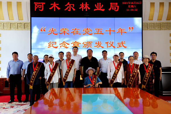 林業(yè)局黨政領導與榮獲“光榮在黨50年”紀念章的老黨員合影