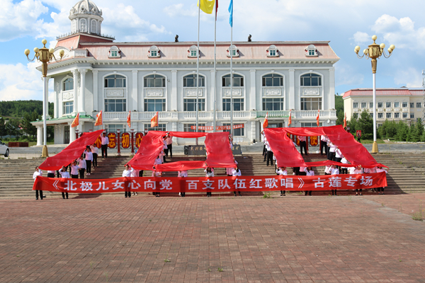 開展“高歌頌黨恩 永遠跟黨走”唱紅歌活動。在生產(chǎn)一線、機關(guān)科室的400多名黨員干部、職工群眾用百米長幅歌頌黨、感謝黨,齊聲高唱《沒有共產(chǎn)黨就沒有新中國》《歌唱祖國》,激情嘹亮的歌聲唱出了對中國共產(chǎn)黨的熱愛和禮贊。全體隊員還用黨旗和紅綢擺出了100的造型,以特殊的方式向建黨100周年獻禮,充分展現(xiàn)了新時代林區(qū)礦山人愛黨愛國的精神風(fēng)貌。