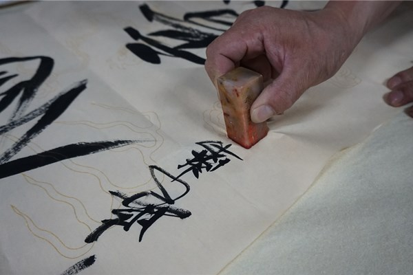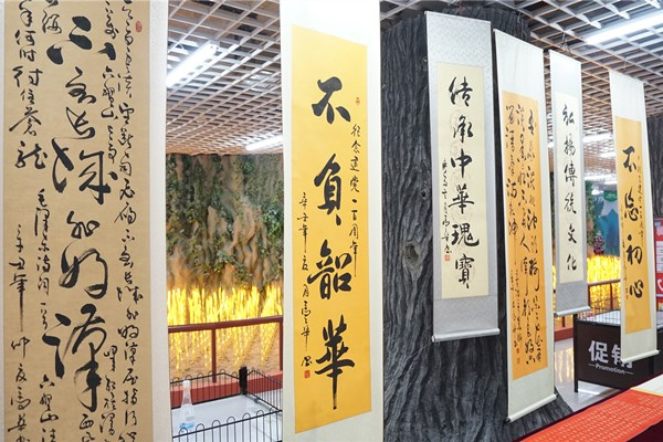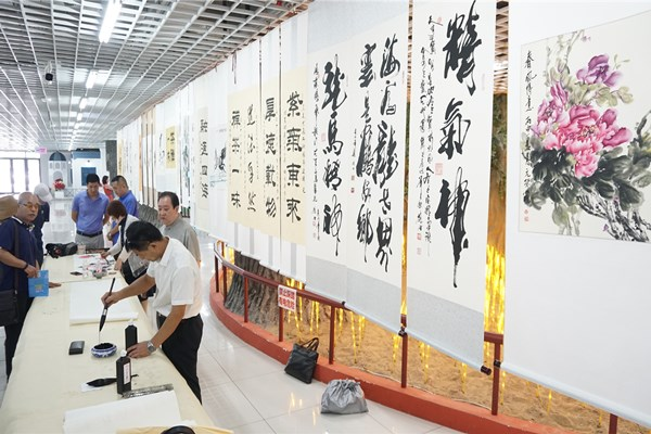 挽袖、研墨、調(diào)色、揮毫,書畫家們進(jìn)行現(xiàn)場書畫創(chuàng)作并交流創(chuàng)作心得。以書言志、以畫寄情,一幅幅極富感染力的書法、繪畫作品,抒發(fā)了對(duì)黨的敬愛之情和對(duì)祖國的美好祝愿?;顒?dòng)現(xiàn)場共展出書畫作品百余件。