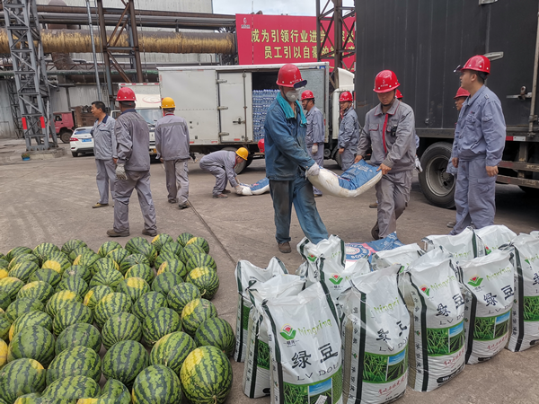 “這幾天真是太悶太熱了,好幾天都三十三四度,不干活都出汗,真的很難受,公司這么關(guān)愛員工,還給我們送來這么多清涼解渴的大西瓜,真的很感動,我一定好好工作,回報領導和企業(yè)對我們的關(guān)愛”,煉鋼廠女工劉洪洋在領取防暑降溫物資時激動地說。