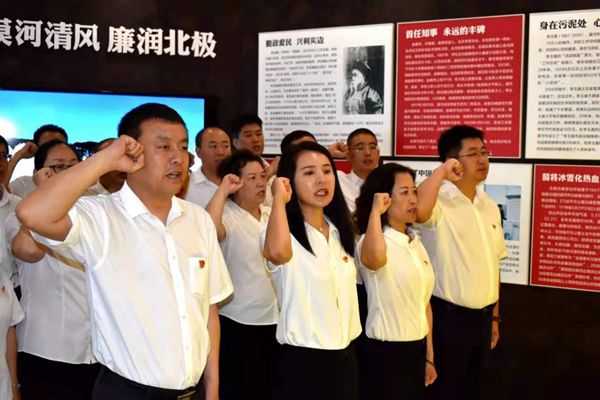 在漠河市廉政教育基地,塔河林業(yè)局研學(xué)交流團(tuán)成員在講解員生動(dòng)的講解下,依次參觀了“以古鑒今 廉潔中華”、“正風(fēng)肅紀(jì) 馳而不息”、“前車之鑒 警鐘常鳴”、“清正為民 廉潔風(fēng)范”四個(gè)篇章。通過(guò)一個(gè)個(gè)觸目驚心的腐敗案例、一幅幅發(fā)人深省的圖片和當(dāng)事人的懺悔實(shí)況錄像,對(duì)現(xiàn)場(chǎng)每一個(gè)人給以強(qiáng)烈的心靈震撼,進(jìn)一步提高了大家對(duì)反腐倡廉重大意義的認(rèn)識(shí)和感悟,筑牢防腐拒變思想防線。在深受警示教育的同時(shí),研學(xué)交流團(tuán)全體黨員干部高舉右拳,面對(duì)黨旗莊嚴(yán)宣誓,重溫入黨誓詞,并在“廉潔宣誓化于心,廉潔承諾重于行”橫幅上鄭重簽下自己的名字,表達(dá)了一定要樹牢不忘初心、勇?lián)姑?、廉潔從政的信念和決心。