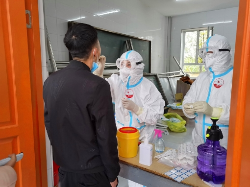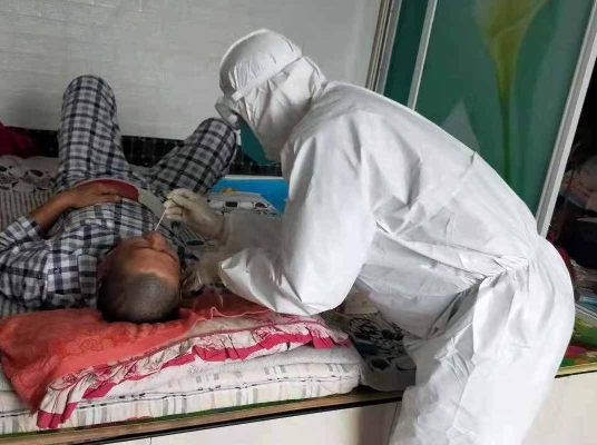 分到黑山鎮(zhèn)核酸采集的21名隊員,則由張艷護士長帶隊,當(dāng)?shù)匾褯]有20人以上接待能力的賓館,支援隊伍在鎮(zhèn)衛(wèi)生院的病房臨時休整4個小時后,集體出發(fā)到黑山鎮(zhèn)下設(shè)的50個村屯進(jìn)行核酸采集工作。