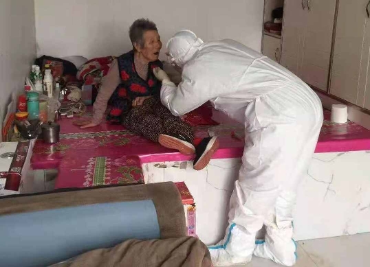 巴彥縣核酸采集現(xiàn)場還活躍著省醫(yī)院健康管理中心疾病康復(fù)部工作人員的身影,護士長李曉莉率先垂范,發(fā)揮黨員先鋒模范作用,帶隊“出征”;隊員徐賢紅克服低血鉀、全身無力等困難,積極參戰(zhàn);隊員林虹則空腹血糖達(dá)10mmol/L,帶著胰島素請求“參戰(zhàn)”。三人早晨7點開始核酸采集工作,深入到各個鄉(xiāng)鎮(zhèn)村屯,更將核酸采集工作延伸到老鄉(xiāng)家中,為臥床及行動不便的人進(jìn)行核酸采集工作,中飯和晚飯都是快速的吃一口盒飯或者泡面就地解決,然后又迅速投入到工作中。據(jù)了解,疾病康復(fù)部人均年齡都在50歲左右,此次抗疫所有的同事都克服自身重重困難,為完成使命,勇往直前,盡顯龍醫(yī)人的本色。