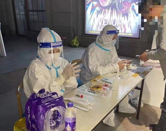在做好發(fā)熱門診本職工作的同時,護(hù)理團(tuán)隊還全力支援社區(qū)全員采集核酸任務(wù)。有的同志在忙碌了一夜夜班后,連家都沒回,又立刻投身到核酸采樣任務(wù)中。時間緊任務(wù)重,經(jīng)常早上4、5點(diǎn)鐘就要出發(fā)集合去采樣地點(diǎn),直到晚10點(diǎn)左右才結(jié)束工作。采樣地點(diǎn)多在室外,氣溫低,更是放棄了吃飯休息的時間,爭分奪秒地為一個又一個居民采樣。長達(dá)十幾個小時的高壓工作,導(dǎo)致肩頸、手腕損傷,但就算這樣,也從未有人下“戰(zhàn)場”。