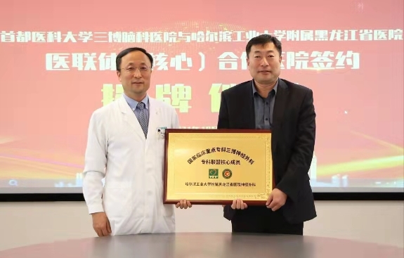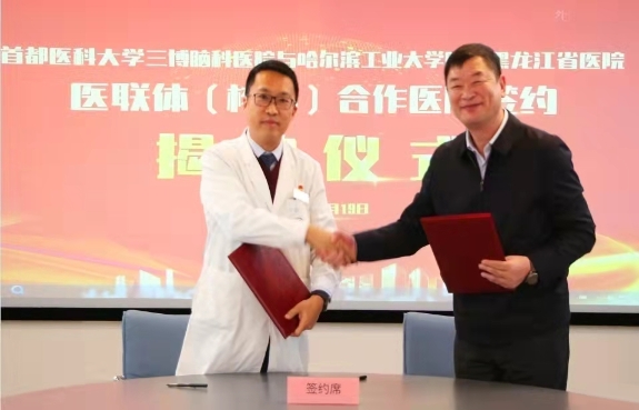 黑龍江經(jīng)濟(jì)網(wǎng)訊(林穎 董宇翔 梁新立) 10月19日,黑龍江省醫(yī)院與首都醫(yī)科大學(xué)三博腦科醫(yī)院結(jié)成醫(yī)聯(lián)體簽約揭牌儀式在北京舉行。今后雙方將在遠(yuǎn)程會診、技術(shù)指導(dǎo)與支持、人才培養(yǎng)和資源共享等多方面開展緊密合作,攜手共進(jìn),優(yōu)勢互補(bǔ),共同提高在神經(jīng)科學(xué)領(lǐng)域臨床、科研及教學(xué)水平,提升醫(yī)療服務(wù)能力,切實(shí)為黑龍江省及周邊地區(qū)百姓提供優(yōu)質(zhì)的醫(yī)療衛(wèi)生服務(wù)。