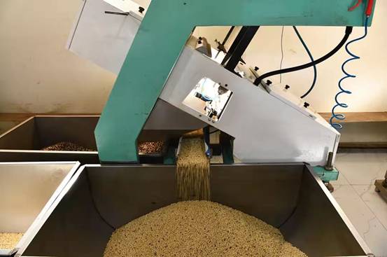 圖為新林林業(yè)局塔源林場堰松籽加工,進(jìn)入色選階段,此工序主要用于籽仁品質(zhì)等級(jí)分類(董淑玲/攝)