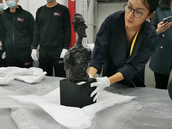 蘇富比為第四屆進博會帶來賈柯梅蒂的《戴亞高的半身像》 新華社記者桑彤 攝