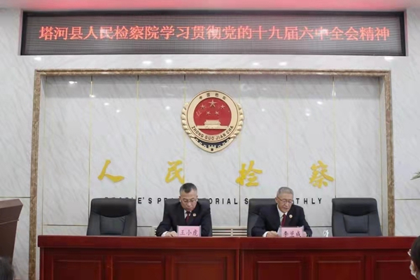 黑龍江經(jīng)濟(jì)網(wǎng)訊(姜曼菲 記者馬朝林)11月16日,塔河縣人民檢察院召開全院干警大會,傳達(dá)學(xué)習(xí)貫徹黨的十九屆六中全會精神,認(rèn)真落實(shí)大興安嶺檢察分院黨組理論學(xué)習(xí)中心組2021年第十一次(擴(kuò)大)會議精神,塔河縣人民檢察院黨組書記、代檢察長王小虎出席會議并講話,院黨組成員、副檢察長李蘭成主持會議。