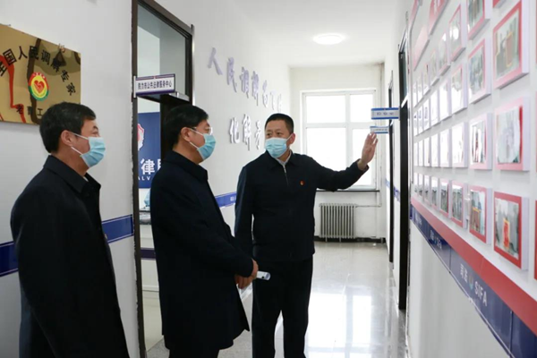 在鐵力市司法局,隋洪波詳細了解人民調(diào)解、公共法律服務(wù)和黨史學習教育開展情況后,對相關(guān)工作給予肯定。他指出,做好人民調(diào)解工作對化解矛盾糾紛、維護社會和諧穩(wěn)定具有重要意義,要繼續(xù)鞏固拓展工作成果,加快實現(xiàn)村級人民調(diào)解組織全覆蓋,打造伊春調(diào)解工作樣板。要牢固樹立以人民為中心的發(fā)展思想,把人民群眾放在心上,發(fā)揮好公共法律服務(wù)中心作用,進一步提升普法宣傳質(zhì)量,持續(xù)加強法治政府建設(shè),努力營造良好法治環(huán)境。要發(fā)揮好老同志“傳幫帶”作用,注重法律與實踐相結(jié)合,提升年輕干部司法實踐能力,提高司法隊伍建設(shè)水平,把黨史學習教育成果轉(zhuǎn)化為為民辦實事解難事的實際行動,為增強人民群眾獲得感、幸福感、安全感貢獻司法力量。