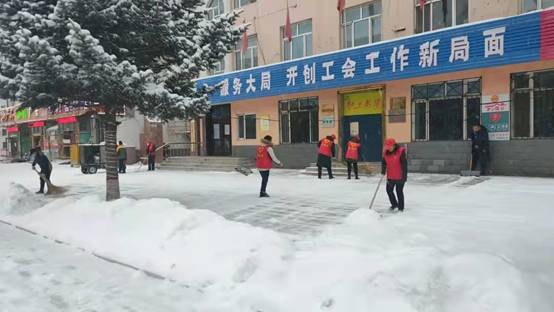 縣總工會黨支部開展掃雪志愿服務(wù)活動,雖然寒風刺骨,但大家都干得熱火朝天,經(jīng)過大家共同努力,原本被積雪覆蓋的路面,露出了"安全出行通道",為出行的職工及居民帶來了方便。