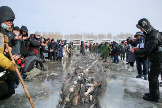 另外,杜爾伯特連環(huán)湖水產資源豐富,水產養(yǎng)殖業(yè)水域面積56萬多畝,湖內盛產40種淡水魚類,尤以鯉魚、草魚、鰱魚、胖頭魚、鯽魚、黑魚等為多,年捕魚千余噸,冬網(wǎng)捕魚更是傳統(tǒng)習俗。連環(huán)湖溫泉景區(qū)冬季每天上午免費開展民俗冬捕活動,購魚享受8折優(yōu)惠,還可以參與抽獎活動。