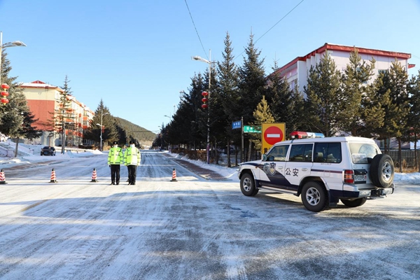 阿木爾公安分局交警對藍(lán)莓小鎮(zhèn)實施交通管制(王力 攝)