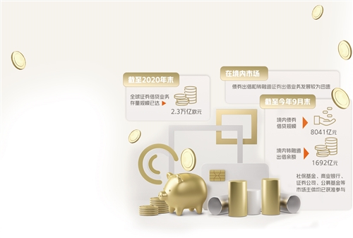 證券出借業(yè)務(wù)俗稱“融券”,是境內(nèi)外資本市場提高二級市場流動性的常見交易制度,發(fā)展較為成熟。截至2020年末,全球證券借貸業(yè)務(wù)存量規(guī)模已達2.3萬億歐元。在境內(nèi)市場,債券出借和轉(zhuǎn)融通證券出借業(yè)務(wù)發(fā)展較為迅速,截至今年9月末,境內(nèi)債券借貸規(guī)模8041億元,境內(nèi)轉(zhuǎn)融通出借余額1692億元,社?;稹⑸虡I(yè)銀行、證券公司、公募基金等市場主體均已獲準參與。