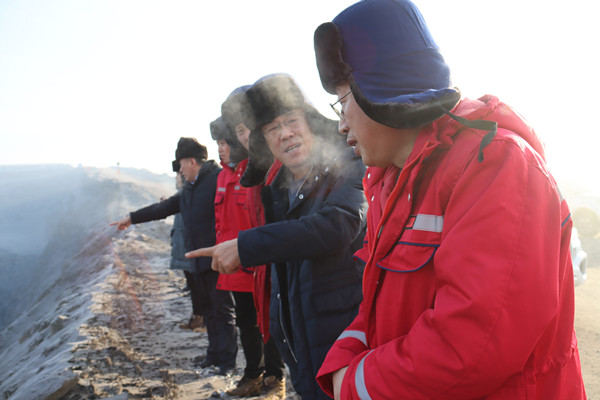 圖為古蓮河露天煤礦黨委書(shū)記帶領(lǐng)相關(guān)人員深入剝采一線檢查安全生產(chǎn)工作
