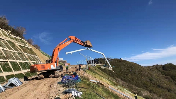 安裝完成的延慶賽區(qū)技術(shù)道路防護(hù)網(wǎng)。