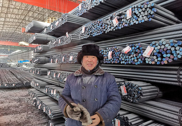 在鋼材成口庫(kù),一位身穿工裝大棉襖、頭戴棉帽,捂得嚴(yán)嚴(yán)實(shí)實(shí),臉色微紅的,帽沿掛滿(mǎn)了霜的工人十分引人注目。他叫朱世軍,是軋鋼廠發(fā)運(yùn)作業(yè)區(qū)丙班的一名普通司索操作員,初一正是白班,主要負(fù)責(zé)鋼材裝運(yùn)掛鉤和為火車(chē)車(chē)皮用鐵線鎖車(chē)門(mén)工作,一但發(fā)運(yùn)繁忙時(shí),無(wú)論白班還是夜班都得在室外作業(yè)裝車(chē),企業(yè)鋼材就靠他們配合裝上火車(chē)發(fā)往市場(chǎng)的。“今天得發(fā)運(yùn)鋼材110車(chē)左右,每天上班,在成品庫(kù)得上上下下,得走好幾里地,今天就挺冷啊,最低零下26度,冷風(fēng)吹的嘴都木了,既使戴著棉手套,手也都凍僵了,但是,每天一想到通過(guò)我的努力,把建龍西鋼鋼材發(fā)往全國(guó)各地,為建龍西鋼美好企業(yè)建設(shè)做貢獻(xiàn),我雖然冷點(diǎn)但心里熱乎乎的,真心感到驕傲和自豪。