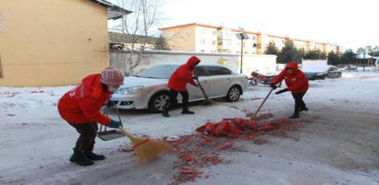 采訪中,正在拿鐵鍬清理垃圾的環(huán)衛(wèi)工人張愛玲對記者說:“對于環(huán)衛(wèi)工人來說,春節(jié)是一年中最忙碌的日子,我們以掃帚為伴,每天堅守在工作一線,這么辛苦目的只有一個,就是要確保林業(yè)局主要道路和大街小巷衛(wèi)生潔凈,讓職工群眾過一個干凈、快樂、祥和的春節(jié)!”