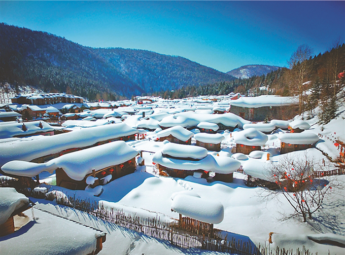 屋頂積雪如流淌的奶油,如玉的白雪在大紅燈籠的照耀下宛如松軟的雪蛋糕……被冰雪裝點的中國雪鄉(xiāng),是極具雪韻美景的地方。更令人叫絕的是,因貝加爾湖冷空氣與日本海暖濕氣流的頻繁交匯以及特殊地形影響,這份神奇的雪景存在的時間特別長,每年的積雪期長達7個月,是中國雪量最大、雪粘稠度最高的地方。