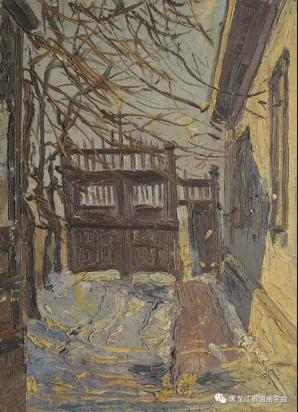 《宅院的門》33×23.8cm 木板油彩 1957年