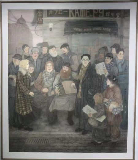 哈爾濱理工大學(xué)蔣博老師積極響應(yīng)黑龍江省“重大歷史題材”美術(shù)創(chuàng)作工程,與愛人吳天文共同努力,攜手創(chuàng)作出了《瞿秋白·心中流淌的國際歌》這件作品。經(jīng)過初期大量的搜集歷史資料,再到草圖的繪制,最后定稿繪制完成,前后歷時(shí)近三年。這幅作品的靈感來源于1921年瞿秋白以記者的身份訪俄,在哈爾濱一個(gè)多月的滯留期間,感受到了共產(chǎn)主義的氣息,第一次聽到了由俄國人傳唱的《國際歌》。凝重的節(jié)奏與激昂的旋律催人覺醒,使人奮進(jìn)。隨后他決定將這首歌翻譯成中文,通過簡(jiǎn)化之后的巧妙翻譯以更加通俗易懂的口吻使民眾接受而廣為傳唱。
