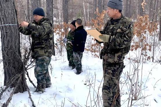 清晨,隊員們迎著初升太陽進山作業(yè);午間,大家坐在雪地上喝著涼水配著面包、饅頭、火腿腸、榨菜充饑;森林調(diào)查環(huán)境雖然艱苦,但沒有一個人叫苦叫累,工作一天下來,隊員們的衣服和鞋都濕透了;傍晚,隊員們回到單位還要加班加點的統(tǒng)計匯總當天的調(diào)查數(shù)據(jù),力爭用最短的時間完成森調(diào)任務。