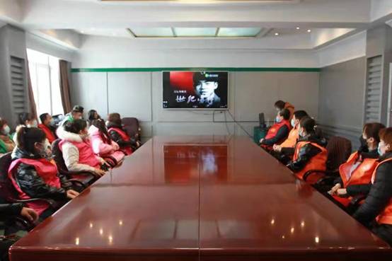 組織志愿者們共同觀看《世紀雷鋒》專題教育片(趙明攝)