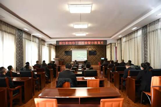 會后,新任職干部代表做表態(tài)發(fā)言。還組織新任職領(lǐng)導(dǎo)干部集體觀看了警示教育片《蠅貪之害》,用違紀(jì)違法真實案例,警示領(lǐng)導(dǎo)干部要嚴格要求自己,不斷增強政治定力、紀(jì)律定力和抗腐拒變的能力。