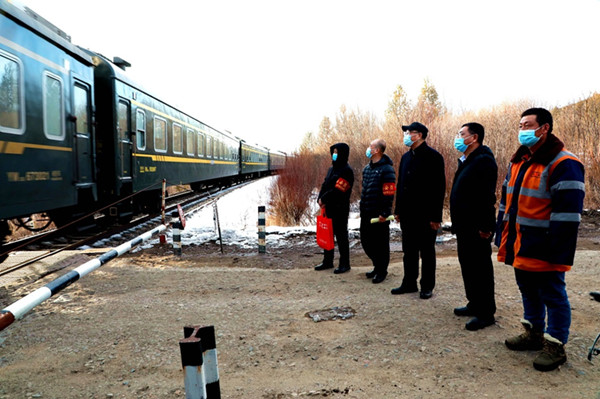 阿木爾林業(yè)局護(hù)路人員守護(hù)旅客列車安全通過(王力 攝)