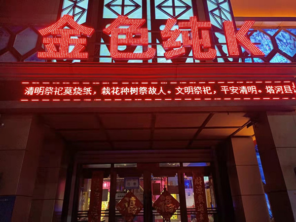 宣傳活動中,塔河縣消防救援大隊(duì)緊密結(jié)合轄區(qū)工作實(shí)際,充分利用LED顯示屏具有宣傳效果好、時間不受限、受眾面廣等特點(diǎn),播放消防宣傳公益廣告和消防標(biāo)語滾動字幕。各重點(diǎn)單位在播放本單位信息的同時,將消防知識作為一項(xiàng)必播內(nèi)容,進(jìn)行全天候、不間斷播放,塔河縣消防救援大隊(duì)還定期對此項(xiàng)工作進(jìn)行督導(dǎo)檢查,確保播出頻次和播出數(shù)量達(dá)到宣傳效果,使廣大市民通過這種快捷、靈活的宣傳方式,隨時隨地觀看到主題鮮明、寓教于樂的消防知識宣傳。