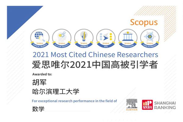 黑龍江經(jīng)濟(jì)網(wǎng)訊(黑龍集日?qǐng)?bào)全媒體見習(xí)記者董廣碩 商祺)近日,全球信息分析公司愛思唯爾(Elsevier)正式發(fā)布了2021“中國(guó)高被引學(xué)者”(Highly Cited Chinese Researchers)榜單。哈爾濱理工大學(xué)自動(dòng)化學(xué)院院長(zhǎng)、博士生導(dǎo)師胡軍教授在數(shù)學(xué)學(xué)科領(lǐng)域連續(xù)兩年入選高被引學(xué)者。本次全國(guó)共有140位學(xué)者入選本次數(shù)學(xué)學(xué)科領(lǐng)域榜單,黑龍江入選4位。胡軍教授蟬聯(lián)榜單展現(xiàn)了他在數(shù)學(xué)及相關(guān)交叉學(xué)科領(lǐng)域的重要貢獻(xiàn)和廣泛學(xué)術(shù)影響力。
