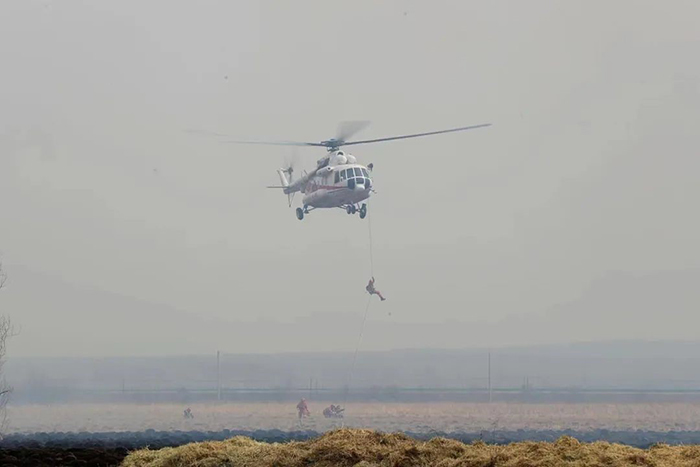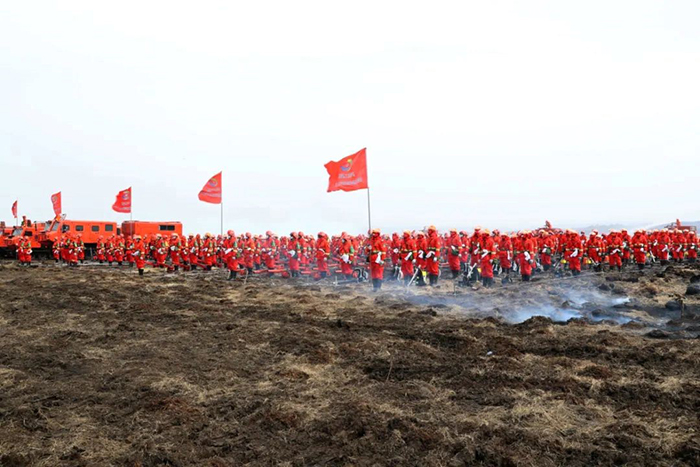 上午11時許,演練指令正式下達,信號彈騰空而起,一場以管護區(qū)內(nèi)某重點林區(qū)發(fā)生火災為演練背景的撲火戰(zhàn)斗全面打響。隨著一道道命令的下達,各參演單位指戰(zhàn)員迅速行動,按照林火監(jiān)測和火情報告、接警處置和啟動預案、組織兵力投送、組織指揮滅火行動等工作流程,有序組織開展演練。演練中,撲火隊伍結(jié)合火場態(tài)勢,科學選用兩翼對進、鉗形夾擊,多點突破、分段圍殲等戰(zhàn)法,重點演練了無人機滅火、直升機空中作業(yè)、常規(guī)滅火、大型裝備滅火等內(nèi)容。來自市森林消防支隊、應急航空救援伊春站、市應急救援支隊、市消防救援支隊,烏伊嶺、湯旺河、新青、紅星、五營、上甘嶺、友好、翠巒、美溪林業(yè)局公司撲滅火大隊,新青林業(yè)局公司紅林、湯林林場分公司快速撲滅火小隊和民兵預備隊等單位,共計800余人參加演練。