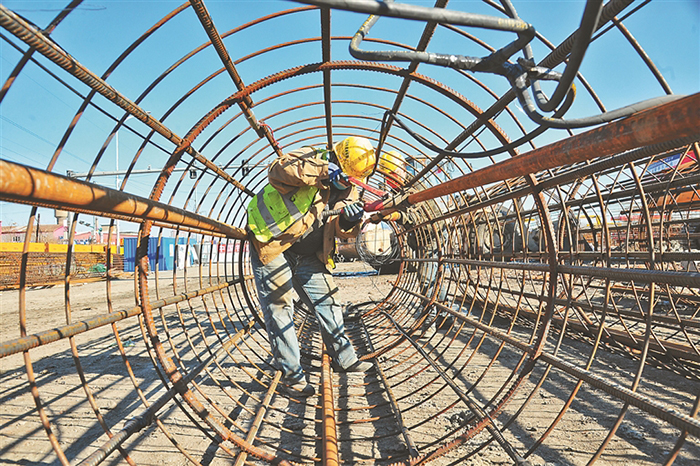 焊花飛濺、工程車來回穿梭……走進省級重點項目——北門街高架橋工程建設現(xiàn)場,施工人員有的綁鋼筋,有的輔助機器打樁,鉆頭飛轉(zhuǎn),施工熱火朝天。