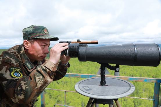 阿木爾林業(yè)局紅旗林場“阿08”瞭望塔瞭望員鄭巖住進(jìn)了增加保溫層的塔室,激發(fā)了工作熱情,正在密切瞭望,做到有火早發(fā)現(xiàn)、早報(bào)告(王力 攝)