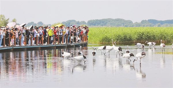 15日,第二個(gè)“鄉(xiāng)約扎龍·情滿鶴城”——“扎龍齊齊哈爾市民日”全面啟動(dòng)。當(dāng)日天藍(lán)水碧,徐徐微風(fēng)拂過,眾多游客來到國際重要濕地之一的扎龍濕地感受濕地風(fēng)光的壯闊之美,欣賞鶴舞云翔的自然之美。馬麗娟 宋燕軍 黑龍江日?qǐng)?bào)全媒體記者 姚建平攝