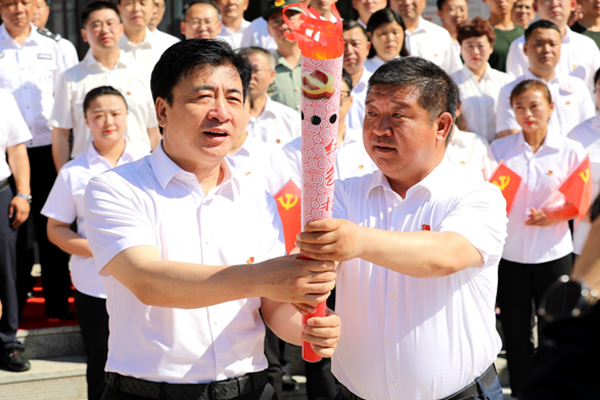 塔河林業(yè)局黨委書記許曉光,塔河縣委副書記、縣長宋波共同啟動“黨建接力·紅色打卡”黨建共建火炬接力活動;塔河縣委常委、組織部部長婁喜春將火炬?zhèn)鬟f給火炬接力第一棒代表隊(duì)隊(duì)長、黨委委員、組織部部長寧洪力手中。
