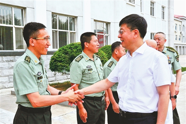 7月29日上午,在伊春軍分區(qū),隋洪波親切慰問了官兵代表,并與軍分區(qū)有關(guān)領(lǐng)導干部座談。隋洪波指出,多年來,駐伊部隊和廣大民兵積極參與全市疫情防控、搶險救災(zāi)、維穩(wěn)處突、脫貧攻堅等工作,為守好祖國“北大門”和促進伊春改革發(fā)展穩(wěn)定作出了突出貢獻。希望駐伊部隊官兵深入貫徹習近平強軍思想,牢牢把握黨管武裝正確方向,堅持黨對軍隊的絕對領(lǐng)導,確保絕對忠誠、絕對純潔、絕對可靠,永遠做黨和人民的忠誠衛(wèi)士。希望駐伊部隊官兵一如既往地支持伊春經(jīng)濟社會發(fā)展,積極參與伊春建設(shè),為加快伊春高質(zhì)量轉(zhuǎn)型發(fā)展繼續(xù)貢獻力量,在推進伊春綠色崛起中發(fā)揮更大作用。