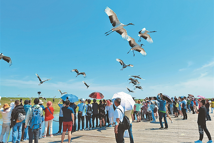 除了打冰球、吃烤肉,每支參賽球隊(duì)都會不約而同地去扎龍自然保護(hù)區(qū)賞鶴,同時(shí)奧悅水世界、龍沙動植物園、鶴城公園等旅游景點(diǎn)的游客接待量也激增。小冰球,讓鶴城旅游變得火熱。