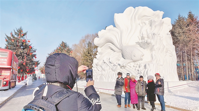 本報(bào)訊(記者 蔣國紅)“這個(gè)魚雕得太好看了,快給我拍張照!”在第35屆中國·哈爾濱太陽島國際雪雕藝術(shù)博覽會(huì)現(xiàn)場,游人或乘坐電瓶車,或徒步欣賞著美麗的雪塑盛宴。