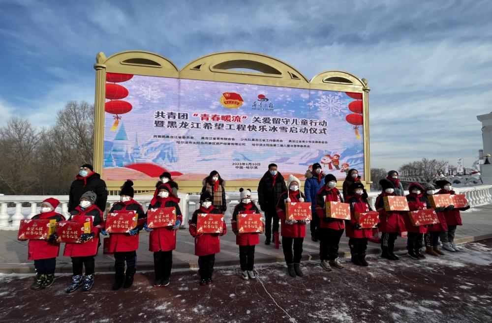 黑龍江經(jīng)濟(jì)網(wǎng)訊(于佳弘 記者祝東)1月10日上午,共青團(tuán)“青春暖流”關(guān)愛(ài)留守兒童行動(dòng)暨黑龍江希望工程快樂(lè)冰雪公益項(xiàng)目啟動(dòng)儀式在哈爾濱太陽(yáng)島國(guó)際雪博會(huì)舉行。活動(dòng)由共青團(tuán)黑龍江省委員會(huì)指導(dǎo),由黑龍江省青年聯(lián)合會(huì)、少先隊(duì)黑龍江省工作委員會(huì)、黑龍江省青少年發(fā)展基金會(huì)聯(lián)合舉辦,并得到了太陽(yáng)島風(fēng)景區(qū)資產(chǎn)經(jīng)營(yíng)有限公司、哈爾濱太陽(yáng)島第二屆兒童冰雪季組委會(huì)、哈爾濱市松北前進(jìn)小學(xué)校的大力支持。共青團(tuán)黑龍江省委副書(shū)記夏天、哈爾濱市太陽(yáng)島風(fēng)景區(qū)資產(chǎn)有限公司黨委書(shū)記、董事長(zhǎng)趙經(jīng)濤和黑龍江省青聯(lián)、黑龍江省少工委、黑龍江省青基會(huì)以及來(lái)自哈爾濱市松北區(qū)前進(jìn)小學(xué)的留守兒童和黑龍江大學(xué)的留學(xué)生,共70余人參與了活動(dòng)。