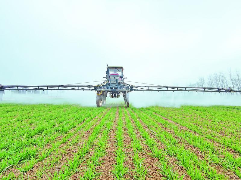 小麥返青,植保作業(yè)正當(dāng)時(shí)。在亳州市譙城區(qū)聶紅偉合作社的麥田旁,工作人員正在調(diào)試自走式打藥機(jī),準(zhǔn)備噴施除草劑?!斑@個(gè)‘大塊頭’一次可以裝2000斤的藥液,一天可以打上1000畝地?!焙献魃缲?fù)責(zé)人聶紅偉告訴記者,通過(guò)發(fā)展訂單農(nóng)業(yè),合作社帶動(dòng)周邊農(nóng)戶種植小麥4萬(wàn)畝。合作社現(xiàn)有各式農(nóng)機(jī)60余臺(tái),可以為農(nóng)戶提供耕種收等全程機(jī)械化服務(wù),農(nóng)戶每畝地產(chǎn)量可提升50斤至80斤,通過(guò)農(nóng)資農(nóng)服降本增效,農(nóng)戶畝均效益提高三四百元。
